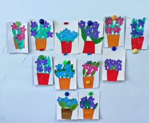 А на занятии в старшей группе дети передали красоту фиалок в своих работах по изо.