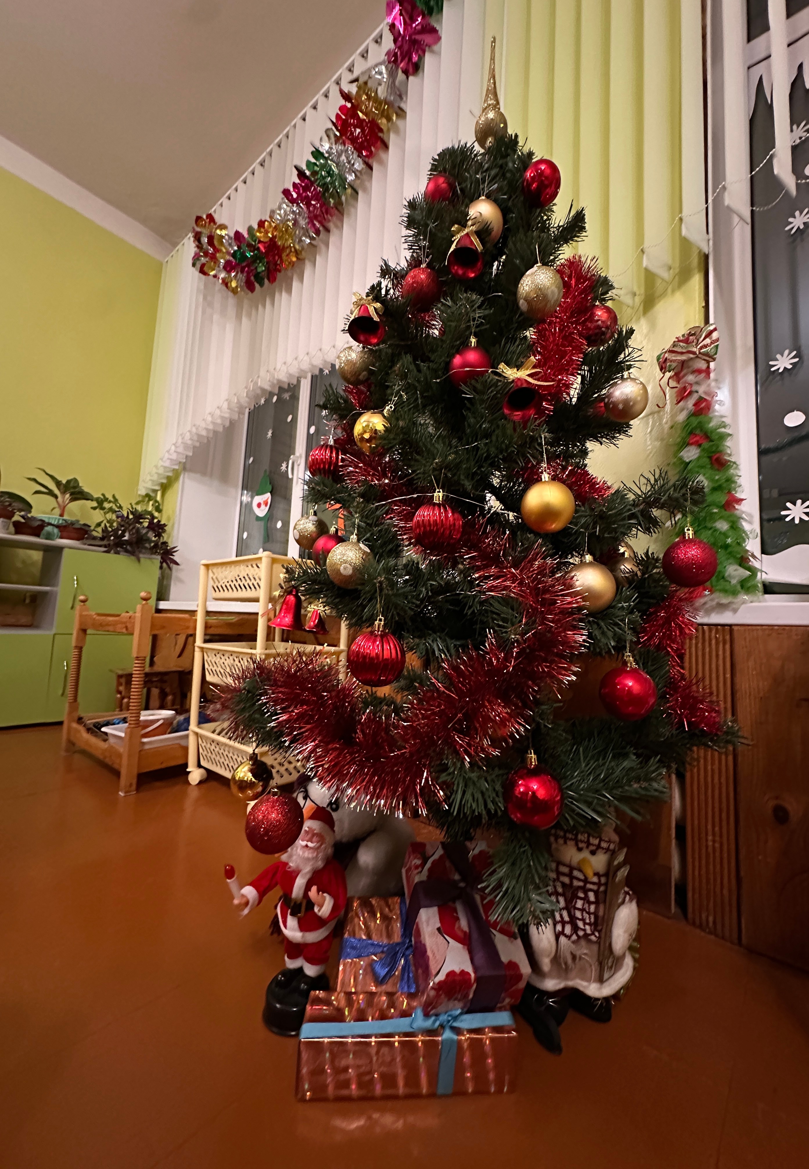Украшение группы к Новому году в детском саду- это увлекательное занятие не только для воспитателей, но и для самих детишек и их родителей. Нарядные игрушки, различные новогодние фигурки, поделки, подарки, креативные ёлочки, оформленные окна- это именно то, что превращает группу в сказочную страну и помогает отправится в новогоднее путешествие. Все постарались придать праздничную атмосферу обычным группам и помещениям, и в результате совместных усилий, как по волшебству наш детский сад превратился в зимнюю сказку.