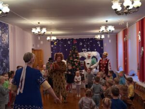 Коляды для предков современных белорусов были главным зимнем праздником, который был связан в первую очередь с днем зимнего солнцестояния и символизировал начало нового года. Колядки — светлый праздник детворы, с новогодней ёлкой, сказочными чудесами, всеобщим весельем, шумными гуляньями. Колядки — это специальные песни с пожеланиями богатого урожая, здоровья, согласия в семье. Такое мероприятие прошло и у нас в детском саду. Детям очень понравилось встречать у себя в гостях колядовщиков, участвовать в хороводах, играть в игры, слушать веселые песни — колядки и угощаться вкусными сладостями. Воспитатель дошкольного образования Ковалёва Карина Игоревна.